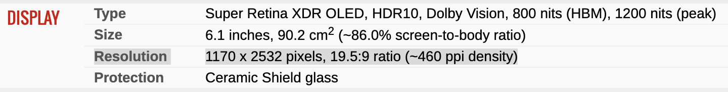 Height 계산하기: 마찬가지로, 화면의 실제 높이를 구하기 위해 해상도를 DPR로 나누면, 2532 / 3을 해서 844가 됩니다.