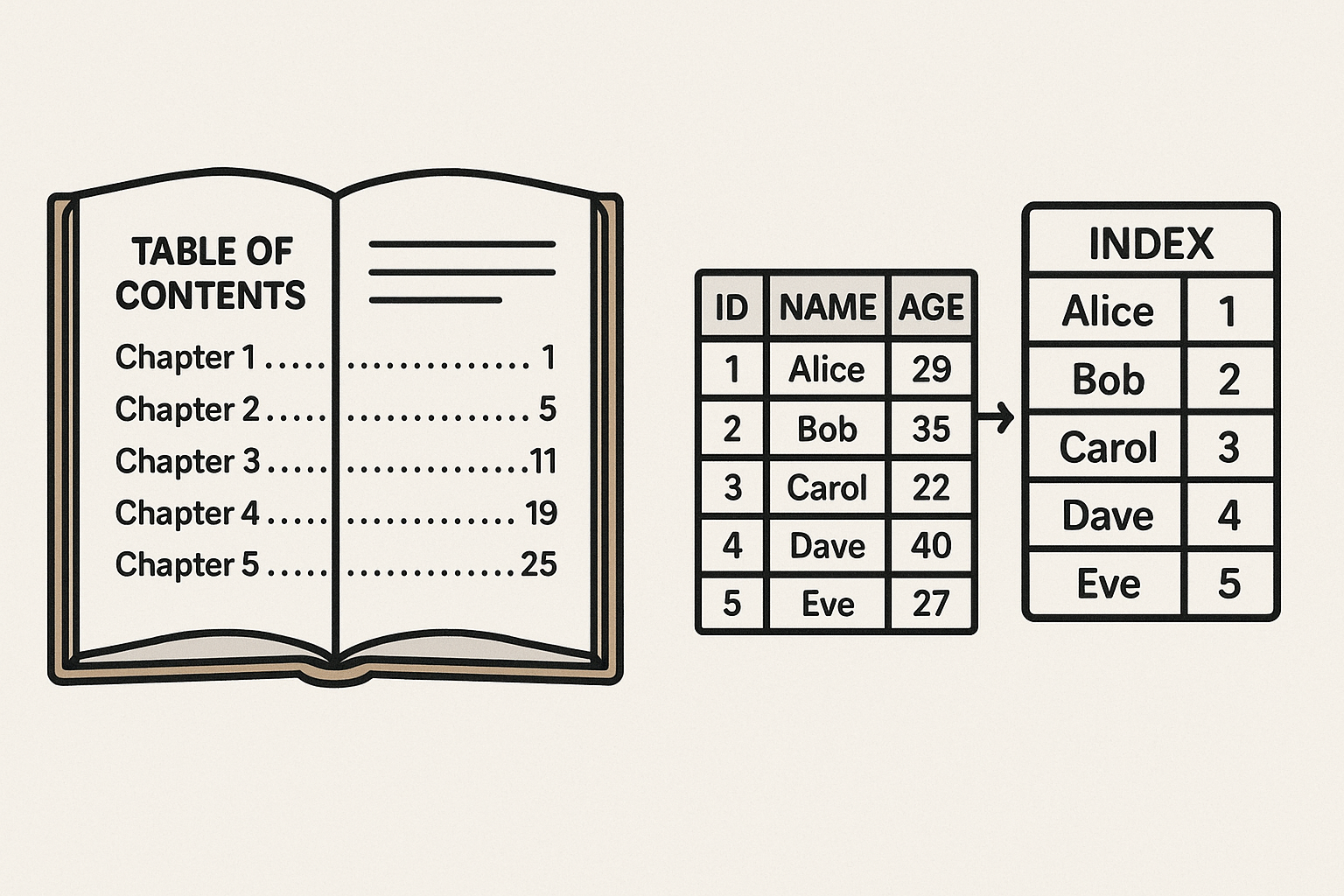 👉 테이블 전체를 뒤지는 대신, 인덱스를 따라가면 필요한 데이터를 빠르게 찾을 수 있어요.