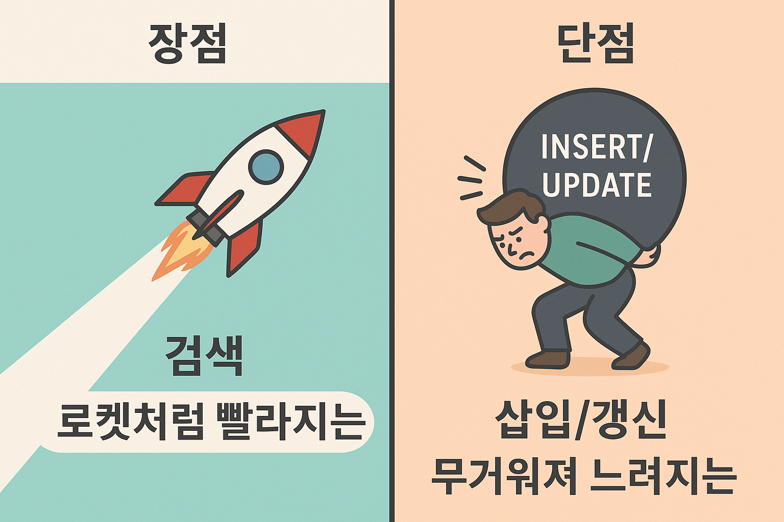 👉 검색이 느려져서 “DB 왜 이렇게 느려요?”라는 말이 나오게 되죠.