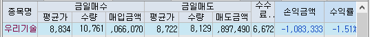 우리기술이라는 종목은 정규장 종목이기 때문에