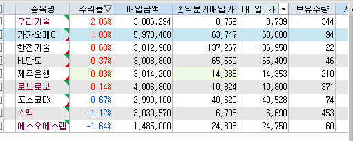 9시 10분쯤에 코스닥 쭉 떨어질때 바로 절반 매도했다.