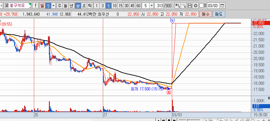 종가 기준 20% 장대 양봉이 나왔다.